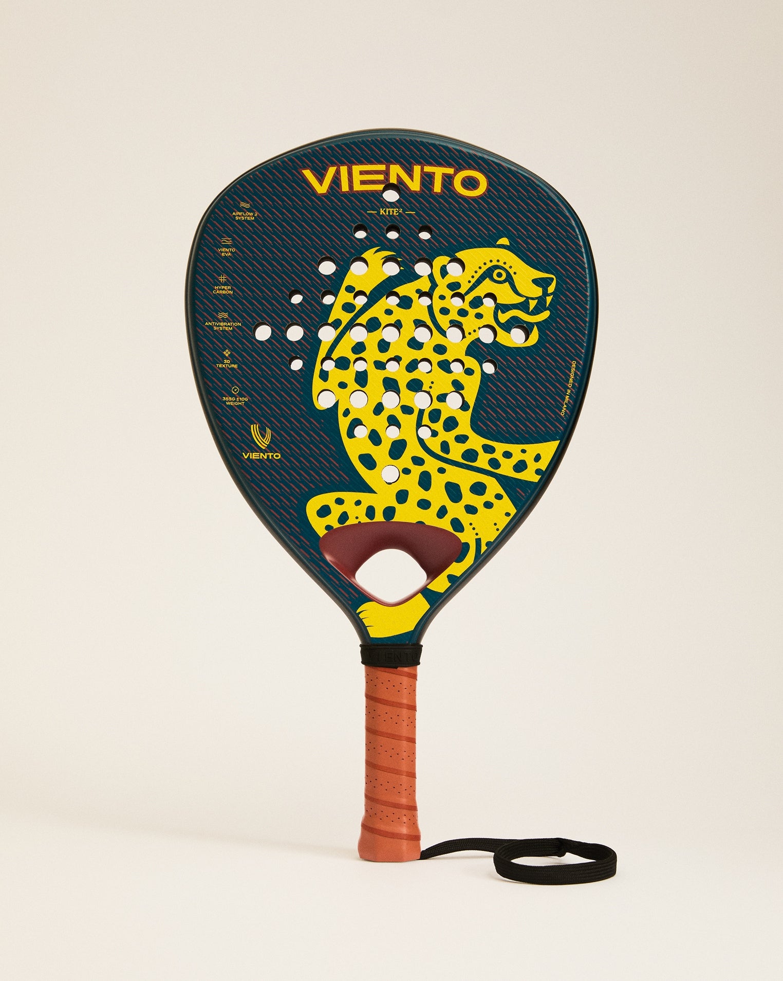 The Hard Eva rubber by Viento defines the character of the Kite 2: firm impact, fast ball output and control on flat shots. The result is a pure attacking padel racket, stable in aggressive phases and solid in high-pressure moments.